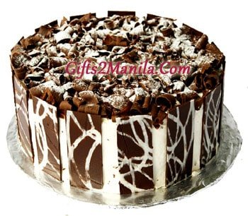 A chocolate cake with just the right sweetness Chocolate chiffon cake on a meringue wafer base covered with whipped cream and decorated with chocolate shaving and fences.Size: 8 Inches Round