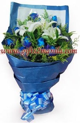 6 Pcs Imported Blue rose with 2 Stem of Lilies.