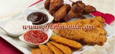 3 pcs of Chicken Wings, 3 pcs of Chicken Strips with a choice of Plain or Spicy Potato Wedges.