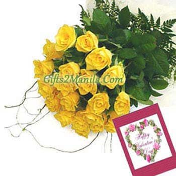 Send this beautiful 24 yellow roses bunch with valentine card is perfect gift for turning friendship to love.