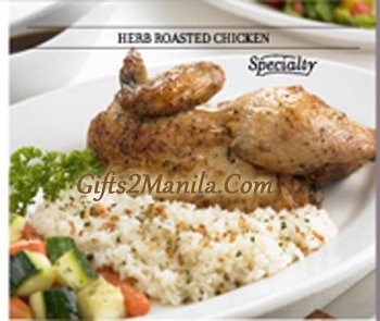 Herb Roast Chicken.Roasted half chicken with Italian herbs, Italian style gravy, sauteed vegetables and a choice of garlic rice or mashed potato.Serving: Regular