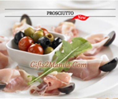 Prosciutto. One pizza, 4 flavors pepperoni, mushrooms, artichoke, shrimp, olives and 4 cheese with arugula Prime Italian air-dried ham served with a medley of cherry tomatoes, black olives and grapes.
