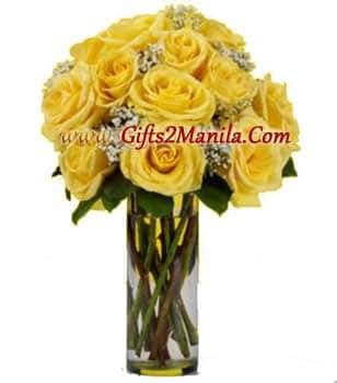 Nothing is more cheerful or delightful than 12 striking yellow roses accented with baby’s breath. The perfect way to say you care and brighten someone’s day.