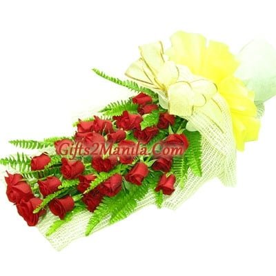 Two dozen red long stem roses wrapped with ribbon comes in a fashionable red gift box. Perfect gift for valentine.