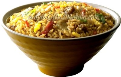 Stir-fried rice mixed with prime beef cuts and chunky chicken balls. Seasoned with spicy chili-garlic spices and soy sauce. Ideal with your favorite dimsum.