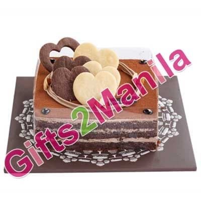Full of heart – heart warming chocolate cake topped with heart shaped cookies and decorated with 24k edible gold leaf on four corners.